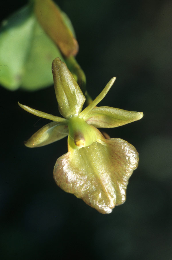 CAUTION!!! I am not entirely convinced that the photo determination is correct so please use caution! The absolutely correct drawing depicts a lip that is bilobed not trilobed and shows 2 basal calli. Everything else about this plant seems correct.