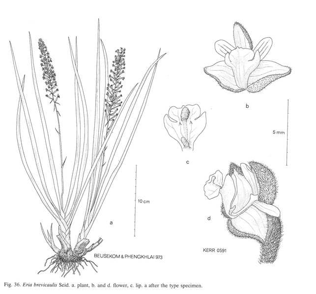 Eria brevicaulis Seidenf. 1982 SECTION Mycaranthes Drawing by © Seidenfaden and The Swiss Orchid Foundation at the Jany Renz Herbaria Website