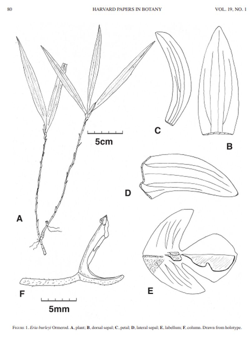 (Orchidaceae: Eriinae) in Malesia Ormerod 2014 Drawing fide; Malesian Orchid J. 17: 124 2016 as Cylindrolobus burleyi