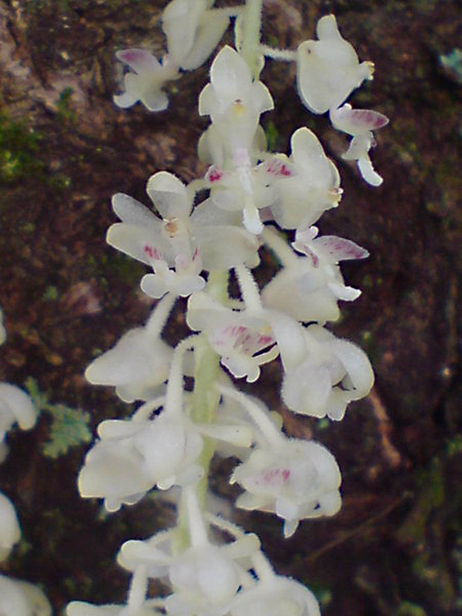 Found in the Philippines at elevations of 500 to 1000 meters as a medium sized, warm growing epiphyte with erect stems carrying, alternate, strap-shaped leaves that blooms in the later spring through summer on 1 to 3, terminal, 12 to 16" [30 to 40 cm] long, many flowered inflorescence with refelexed, ovate to ovate-lanceolate, acuminate bracts .
