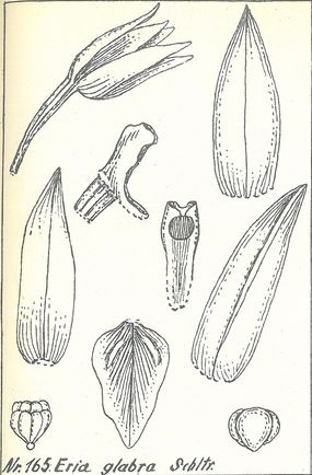 Eria glabra Schltr. 1911 SECTION Polyura Drawing by © Schlechter and The Swiss Orchid Foundation at the Jany Renz Herbaria Website