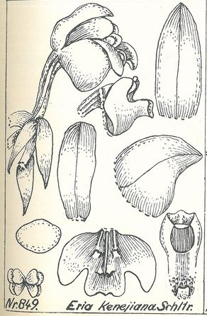 Eria kenejiana Schltr. 1912 SECTION Cylindrolobus Type Drawing by © Schlechter and The Swiss Orchid Foundation at the Jany Renz Herbaria Website