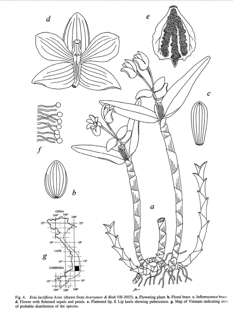 Eria lactiflora Aver. 1999 SECTION Cylindrolobus TYPE Drawing by © Leonid Averyanov