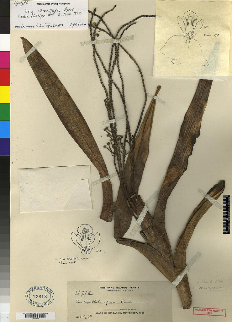 Eria lamellata Ames 1912 SECTION Mycaranthes Collection Sheet by © Romero and The Filibot Website
