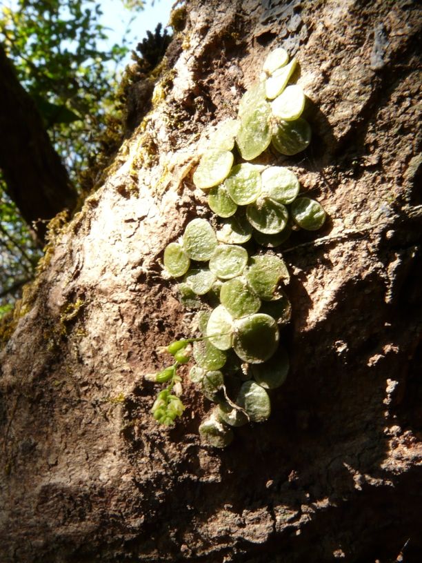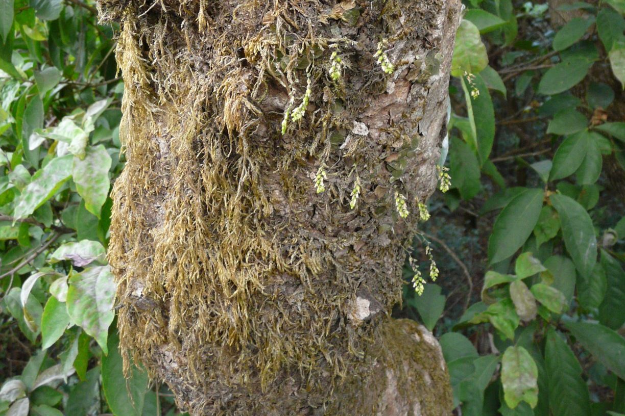 Found in southwestern India, Sri Lanka and Thailand in semi-evergreen forests on moss laden tree trunks at elevations around 700 meters on mossy trees as a mini-miniature sized, warm growing epiphyte with irregularly round, strongly compressed pseudobulbs carrying 2 to 3, deciduous, sessile, obovate-elliptic, apiculate leaves leaf and blooms in the late summer and fall on a pendant, .8 to 2" [2 to 5 cm] long, 7 to 12 flowered inflorescence.