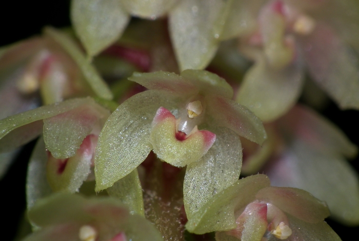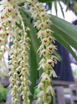 Found only in the Philippines at elevations of 60 to 2400 meters as a medium sized, sprawling, hot to cool growing epiphyte or semi-terrestrial with somewhat club-shaped pseudobulbs carrying to 5, lanceolate, shiny leaves that blooms in the fall on a pendulous, to 4" [10 cm] long, many [40] flowered inflorescence arising from the upper portion of the plant