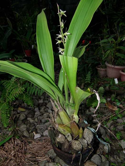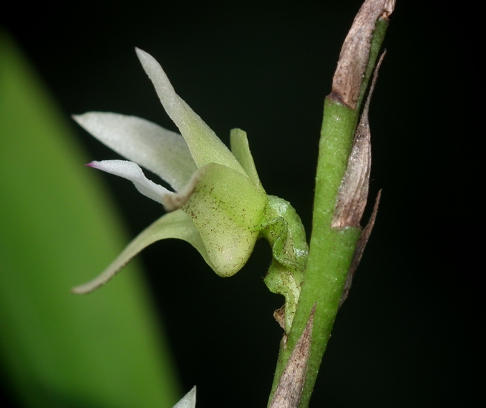 Similar to E javanica but this one differs mostly by the twisted angled ovary as well as the clumping pseudobulbs instead of a visible rhizome.