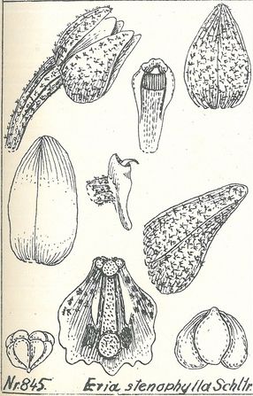 Eria stenophylla Schltr. 1912 SECTION Mycaranthes Type Drawing by © Schlechter and The Swiss Orchid Foundation at the Jany Renz Herbaria Website