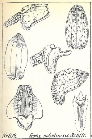 Eria subclausa Schltr. 1912 SECTION Hymenaria Type Drawing by © Schlechter and The Swiss Orchid Foundation at the Jany Renz Herbaria Website