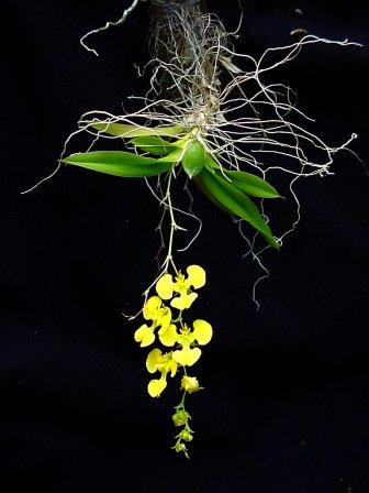 This species requires a longer mid-winter dry rest than the preceding species. Best tied to a cork or tree fern mount, given warm to hot temperatures and while growing given ample water and light shade. As growth slows in the late fall stop watering, but an occcasional misting and an increase in light is reccomended.