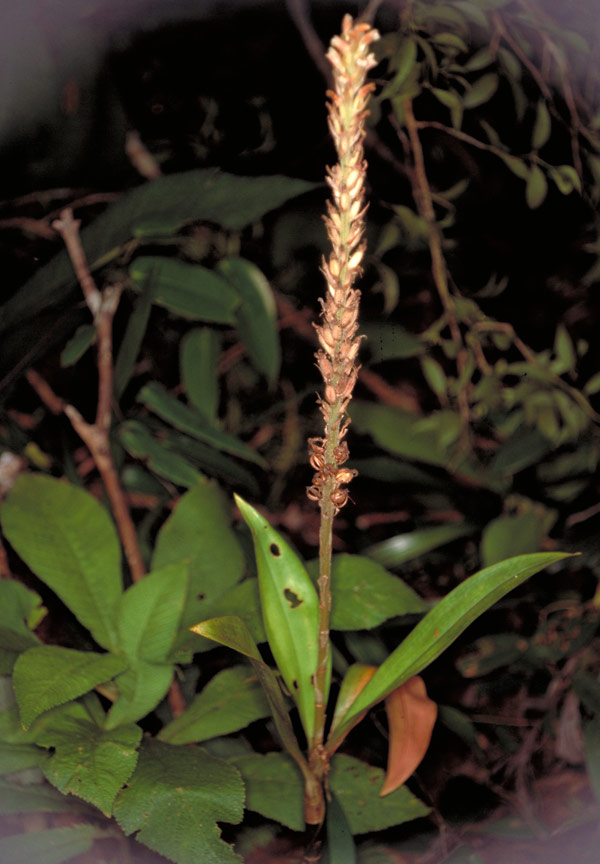 Found in southern Malaysia in secondary forests and in gullies along cliff faces at elevations of 400 to 500 meters as a large sized, [largest and most robust of the genus], hot growing terrestrial with a 12 to 16" [30 to 40 cm] long, stem carrying 8 or so, petiolate base leaves that blooms in the late summer and early fall on a terminal, erect, 12 to 20" [30 to 50 cm] long, densely many flowered inflorescence.