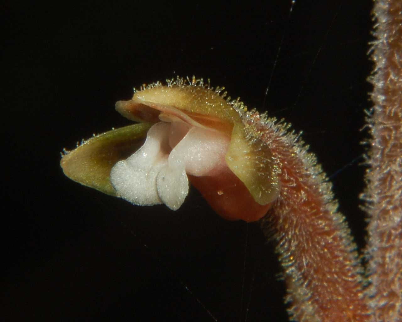 Found in Assam, Bangladesh, Guangdong, Guangxi, southeastern Yunnan provinces of China, Thailand, Vietnam, Taiwan, Java, Malaysia and Sumatra in humus rich soils often with bamboos in forests at elevations around 400 to 1600 meters as a medium sized, warm to cool growing terrestrial with an erect stem carrying 4, basal, obliquely oblong-ovate, abruptly narrowing below into the 3/4" long petiolate base leaves that blooms in the late winter and spring on an erect, terminal, peduncle 4.8 to 16" [12 to 40 cm] long, provided with 3 to 6 sterile bracts, glandular pubescent, brown, long, racemose, subdensely many flowered inflorescence with reddish brown, lanceolate, abaxially pubescent, acuminate floral bracts.