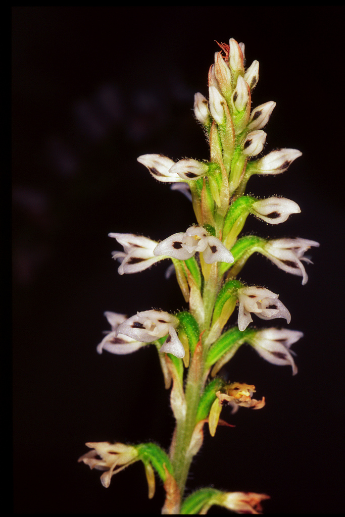 Found in Rio de Janiero, Sao Paulo, Parana and Santa Catarina states of Brazil as a small sized, cool growing terrestrial orchid with spaced in a whorl going up the stem, silver on pale green, elliptic to elliptic-lanceolate, acute abruptly narrowing below into the petiolate base leaves leaves and blooms in the later spring on an erect, several flowered inflorescence with well spaced lanceolate, acute bracts and shorter than the ovary floral bracts and carrying small flowers.