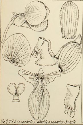 Eulophia amblyosepala (Schltr.) Butzin 1975 Drawing by © Schlechter and The Swiss Orchid Foundation at the Herbarium Jany Renz Website