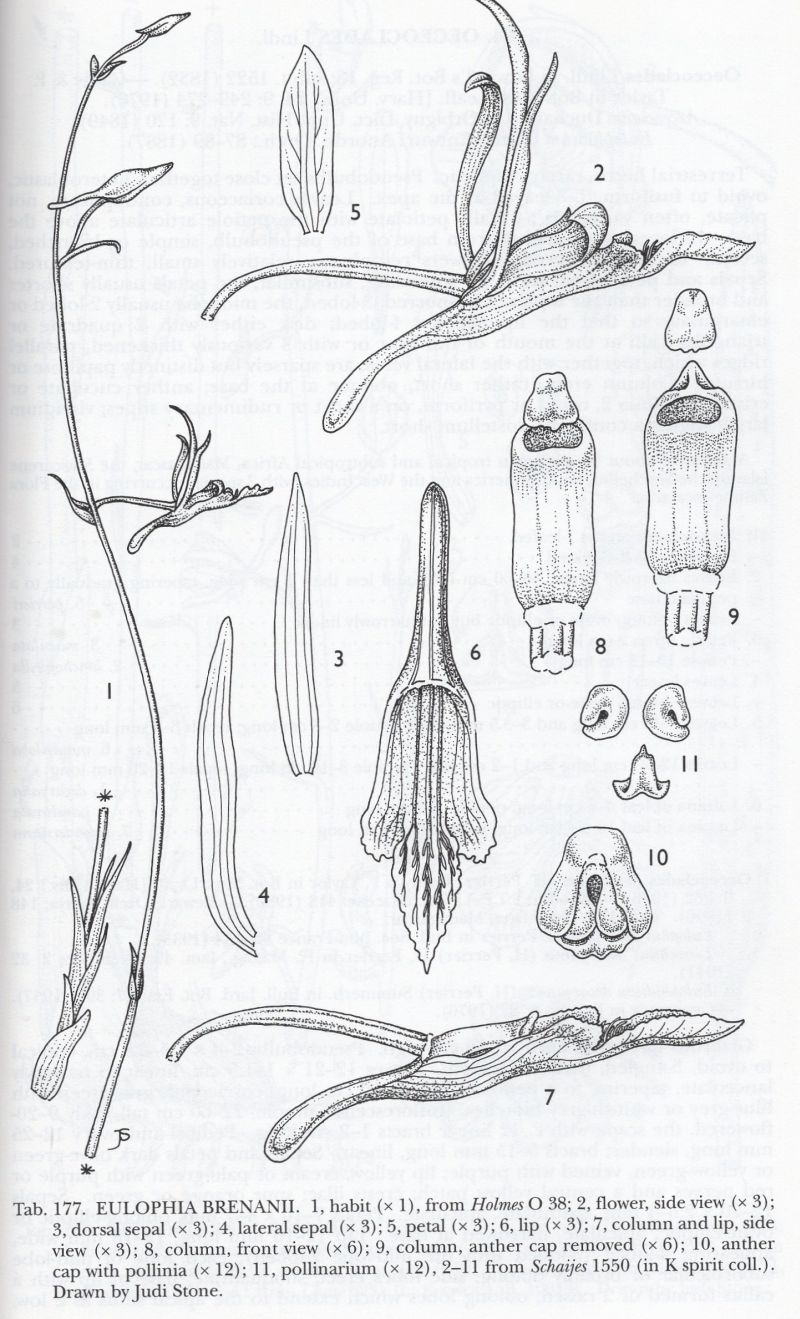 Eulophia brenanii P.J.Cribb & la Croix 1998 Drawing by © Judi Stone