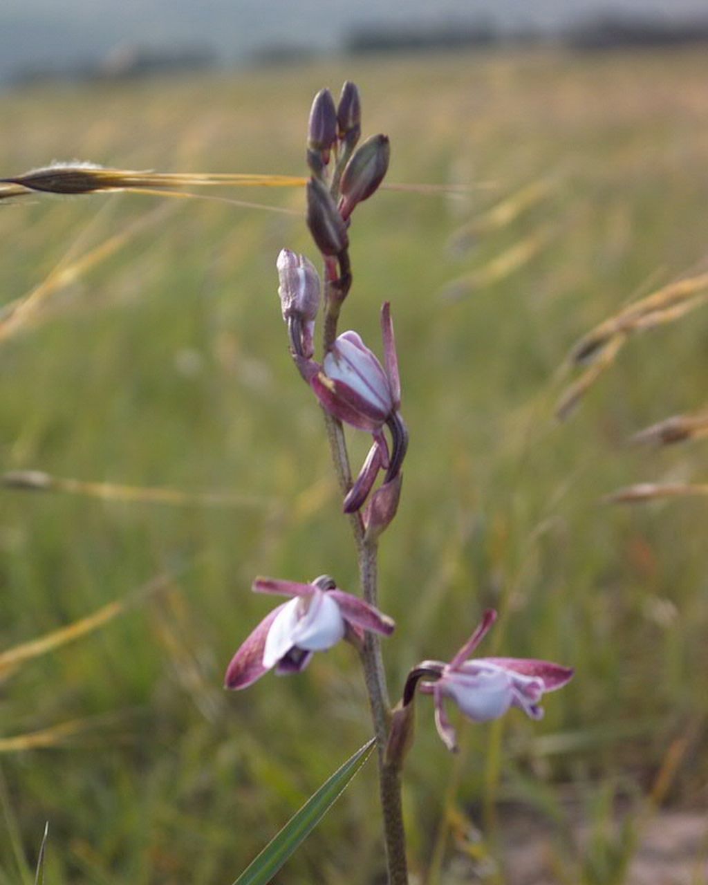 Found in Zaire, Ethiopia, Kenya, Tanzania, Malawi, Mozambique, Zambia, Zimbabwe, Botswana, Lesotho, Swaziland, Cape Province, Natal, Orange Free State and Transvaal South Africa, Madagascar and Yemen in grass and bushlands often very dry, at elevations of 1650 to 2200 meters as a small to medium sized, cool to cold growing terrestrial orchid with a chain of flattened, subterranean pseudobulbs giving rise to 5 to 6 plicate, linear leaves arising with the terminal, few to many flowered inflorescence with widely spaced, often not opening well flowers occuring in the spring through fall.