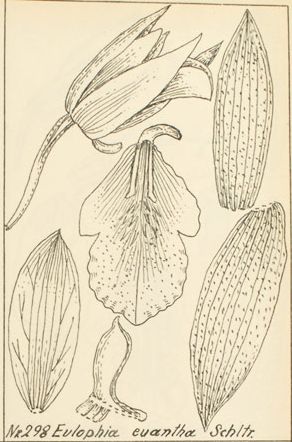 Synonyms Eulophia abyssinica var. euantha (Schltr.) Geerinck 1992; Eulophia speciosa Rolfe 1897; Eulophia speciosissima Butzin 1975; Orthochilus euanthus (Schltr.) Bytebier 2014