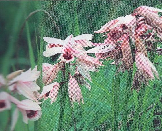 Found in Congo, Zaire, Burundi, Tanzania, Mozambique, Zambia, Malawi and Angola in grasslands near woodlands at elevations of 850 to 1650 meters as a small to medium sized, warm to cool growing terrestrial with subterranean, tuberous organs giving rise to 1 to 3, linear, acumionate, ribbed, grass-like, absent or partly developed at flowering time leaves that blooms in the later spring on an erect, 3 short sheathed on the peduncle, densely 4 to 12 flowered inflorescence with spreading, lanceolate, acuminate floral bracts