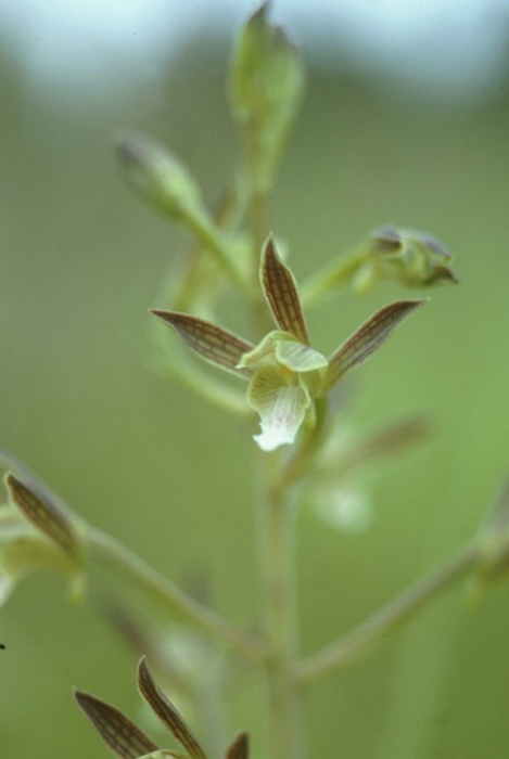 Found in Zaire, Ethiopia, Kenya, Uganda, Tanzania, Malawi, Zambia, Zimbawe and Botswana in swampy grasslands and meadows near rivers and streams and in shallow standing water in dambos at elevations of 600 to 1750 meters as a medium to large sized, warm to cool growing terrestrial with subterranean tuberous, conical-ovoid, chain-forming growths giving rise to 3 to 5, forming a fan or tuft, linear-lanceolate, ribbed, leaves well developed at blooming in the later spring and summer on an erect, laxly up to 9 flowered inflorescence almost enveloped completely by 4 to 5 bracts and has lanceolate, spreading, acuminate floral bracts