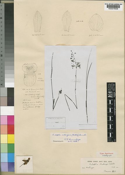 References W3 Tropicos, Kew Monocot list , IPNI ; The Orchids of South Central Africa Williamson 1977 drawing fide; Flora of Tropical East Africa Part 3 Cribb 1989 photo fide; Flora Zambesiaca Vol 11 Orchidaceae Part 2 Pope 1998
