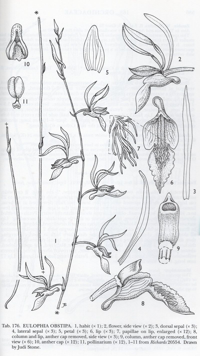 Eulophia obstipa P.J.Cribb & la Croix 1998 Drawing by © Judi Stone