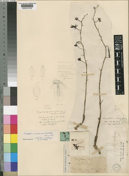 Synonyms Eulophia excavata Butzin 1957; Eulophia letouzeyana Geerinck 1989 publ. 1990; Eulophia maesta (Merxm.) Butzin 1975; Eulophia microceras (Rchb.f.) Summerh. 1953; Eulophia taylorii (Ridl.) Butzin 1975; Lissochilus cochlearis Schltr. 1916; Lissochilus heteroglossus Rchb.f. 1881; Lissochilus maestus Merxm.1951; Lissochilus microceras Rchb.f. 1881; *Lissochilus pyrophilus Rchb.f. 1878; Lissochilus taylorii Ridl. 1886
