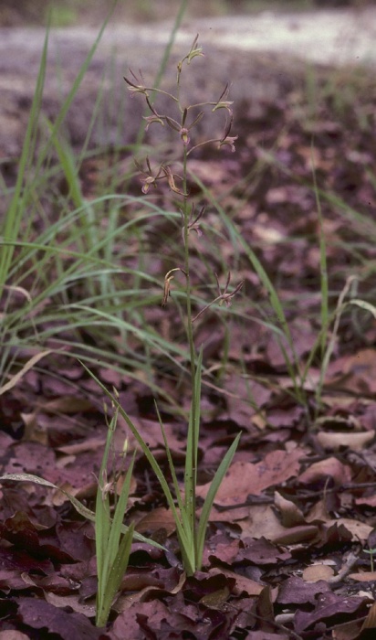 Found in Burundi, Zaire, Tanzania Angola, Malawi, Zambia and Zimbabwe in sandy woodlands, rocky hillsides in sandy soils at elevations of 800 to 1650 meters as a medium sized, warm to cool growing terrestrial with a mostly subterranean, conical, pseudobulbous growth giving rise to 5 to 9, forming a fan, linear to linear-lanceolate, acute to acuminate leaves that are starting to develop at blooming occuring in the spring on 1 to 2, erect, laxly few to several flowered inflorescence with an ovate bract in the basal half and linear, acuminate floral bracts