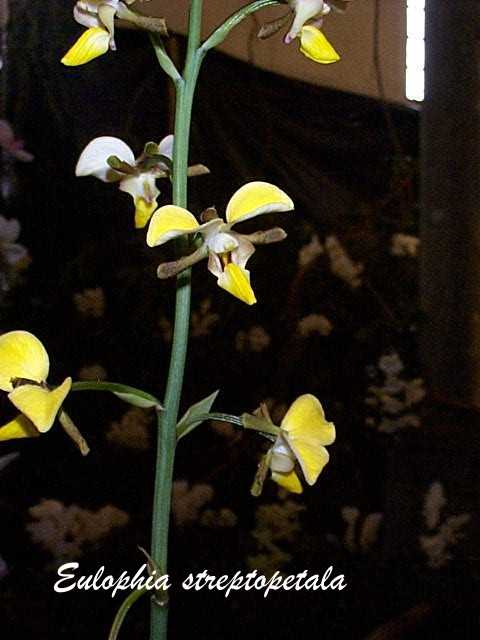 References W3 Tropicos, Kew Monocot list , IPNI ; Otia Botanica Hamburgensia Rchb.f 1881 as Lissochilus renschianus; Xenia Orchidaceae Vol 3 Reichenbach 1894 as Lissochilus graefei drawing; Die Orchideen Schlechter 1915 as Lissochilus krebsii; Die Orchideen Schlechter 1915 as Lissochilus streptopetalum; Atlas des Orchidees Cultivees Constantin 1920 as Lissochilus krebsii drawing fide; AOS Bulletin Vol 28 No 4 1959 as Lissochilus krebsii; AOS Bulletin Vol 32 No 10 1963 as E paivaeana; Encyclopedia of Cultivated Orchids Hawkes 1965 as E krebsii; Encyclopedia of Cultivated Orchids Hawkes 1965; An Introduction to the South African Orchids Schelpe 1966; Orchids of East Africa Piers 1968 as E grantii; Orchids of East Africa Piers 1968 as E paivaeana; Orchids of East Africa Piers 1968 as E paivaeana subsp borealis photo good; Orchids of East Africa Piers 1968 as E stenophylla; AOS Bulletin Vol 44 #4 1975 as E paivaeana ssp borealis; The Orchids of South Central Africa Williamson 1977 as E paivaenana drawing/photo AOS Bulletin Vol 47 No 6 1978 as Lissochilus krebsii; Wild Orchids of Southern Africa Stewart, Linder, Schelpe & Hall 1982 photo fide; AOS Bulletin Vol 52 No 1 1983 photo fide; Flora of Tropical East Africa Orchidaceae Part 3 Cribb 1989 photo fide; Flora of Tropical East Africa Orchidaceae Part 3 Cribb 1989 as E streptopetala var stenophylla; Schlechteriana Vol 2 No 1 1991 photo fide; Rudolf Schlechter Die Orchideen Band 1B lieferung 24 1457 - 1520 Brieger 1991 drawing/photo fide; Rudolf Schlechter Die Orchideen Band 1B lieferung 24 1457 - 1520 Brieger 1991 as E krebsii; The Manual Of Cultivated Orchid Species Bechtel, Cribb and Launert 1992 photo fide; AOS Bulletin Vol 62 No 10 1993 postage stamp fide; Orchids of Kenya Stewart & Campbell 1996 as E stenophyla photo fide; Manual Of Orchids Stewart 1995 drawing fide; Orchids of Kenya Stewart & Campbell 1996 photo fide; African Orchids in the Wild and in Cultivation La Croix 1997 photo/drawing fide; Flora Zambesiaca Vol 11 Orchidaceae Part 2 Pope 1998 photo fide; Orchids of Southern Africa Linder & Kurzwell 1999 drawing/photo fide; Field Guide to the Ethiopian Orchids Demissew, Cribb & Rasmussen 2004 photo/drawing fide; Field Guide to the Orchids of Northern South Africa and Swaziland McMurty, Grobler, Grobler & Burns 2008 photos fide; Terrestrial African Orchids, A select Review John S. Ball 2009 drawing fide; The Cape Orchids Liltved & Johnson 2012 photos fide; Le Petit Larousse des Orchidees Lecoufle, Barthelemy and Schmidt 2013 photo fide; AOS Bulletin Vol 84 #10 2015 photo fide; AOS Bulletin Vol 86 # 8 2017 drawing fide;