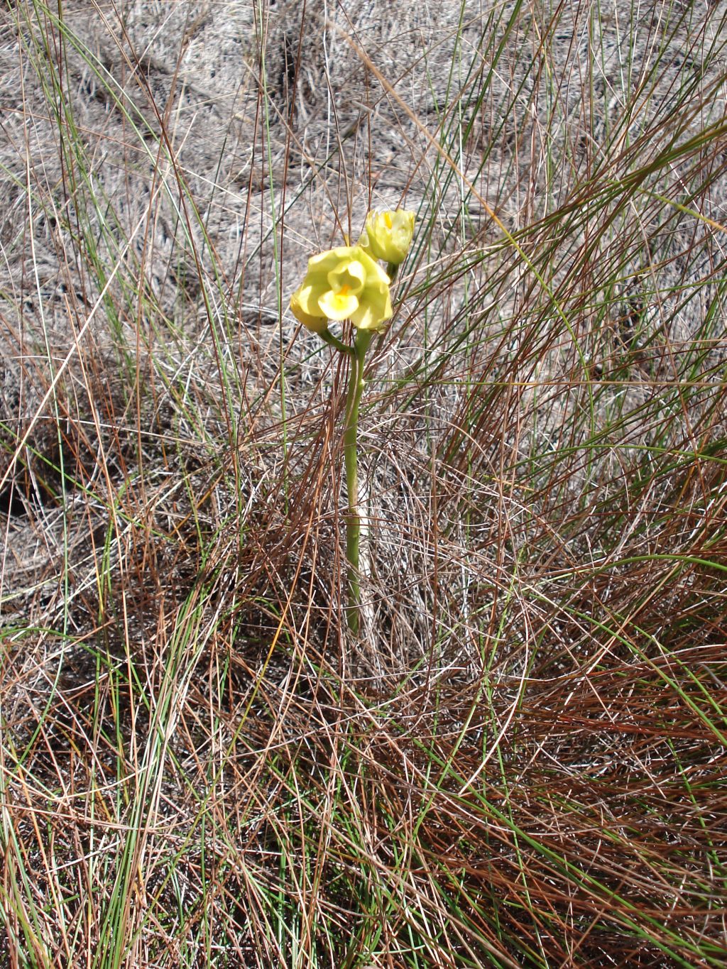 Found in southern Cape Province South Africa in fynbos in sandy soils near sandstone and in marshy places with humus as a miniature to medium sized, cold growing terrestrial with a subterranean monilirformous rhizome giving rise to erect and plicate, linear, acute leaves becoming mature at flowering which occurs in late spring and summer on an erect, [10 to 40 cm] long, 2 to 12 flowered inflorescence.