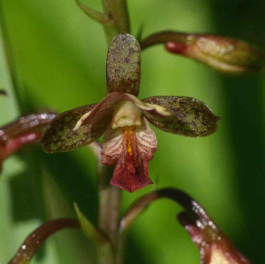 Found in Mozambique, Zimbabwe and Natal and Transvaal South Africa in submontane grasslands at elevations of 1500 to 1800 meters as a small sized, cool growing terrestrial with subterranean, chain forming tubers giving rise to narrowly linear, grass-like leaves usually present at time of flowering in the late spring and early summer on a erect, peduncle with 3 bracts, 6 to 24" [15 to 60 cm] long fairly densely few to 25 flowered inflorescence with lanceolate, acumionate floral bracts.