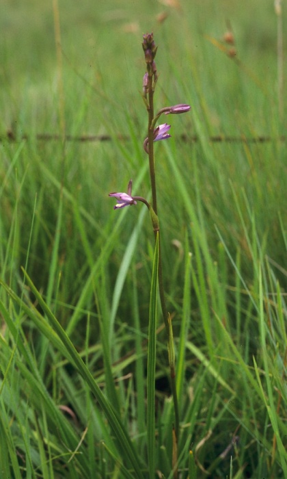 Found in Cape Province, Swaziland, Natal and Transvaal South Africa in high altitude sour grasslands at elevations of 1000 to 2200 meters as a small to medium sized, cold growing terrestrial with grass-like, linear leaves that are half developed at blooming occuring in the late spring and early summer on an erect, laxly 4 to 17 flowered inflorescence.