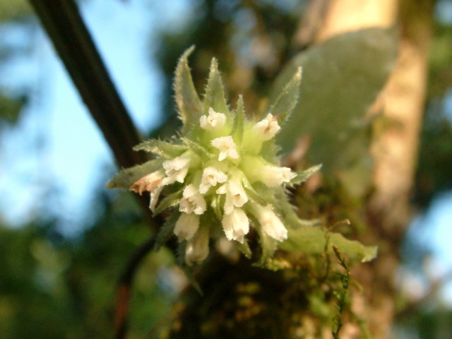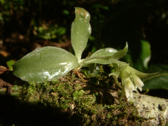 Found in Mexico, Belize Guatemala and Nicaragua in montane cloud forests at elevations around 900 meters as a mini-miniature sized, warm growing epiphyte with basal, elliptic to obovate, apiculate, gradually narrowing into the shortly petiolate base leaves that blooms in the winter on a capitate, 1" [2.5 cm] long, pilose inflorescence completely covered by pilose, elongate, acute bracts and carrying a head of many flowers at the apex.