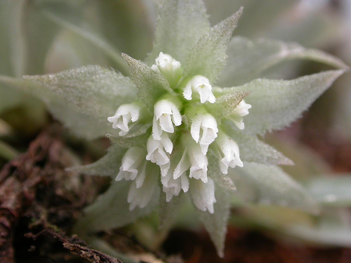 Found in the Mantiqueira Rain Forest Mountains of Minas Gerais and Sao Paulo State Brazil as well as Costa Rica, Panama, Colombia, Venezuela, Ecuador and Peru in seasonally dry cloud forests at elevations of 500 to 3150 meters as a mini-miniature sized, warm to cold growing epiphyte with a basal rosette of elliptic, acute, apically marginally minutely hairy leaves that are conduplicate below into a distinct petiole that blooms in the late summer and fall on a short to 1" [2.5 cm] long, pendant inflorescence with a head-like cluster of several [6 to 8] flowers with inflated, pilose floral bracts.