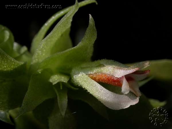 Found in central and southeastern Brazil in deep shade on tree trunks and branches in high humidity at elevations around 1300 to 1600 meters as a mini-miniature sized, cool growing epiphyte with 2 to 4, light green, shiny, elongate-oval, acute leaves held in a rosette that blooms in the summer on a pendulous, .8" [2 cm] long, densely pilose, 1 to 2 flowered inflorescence.