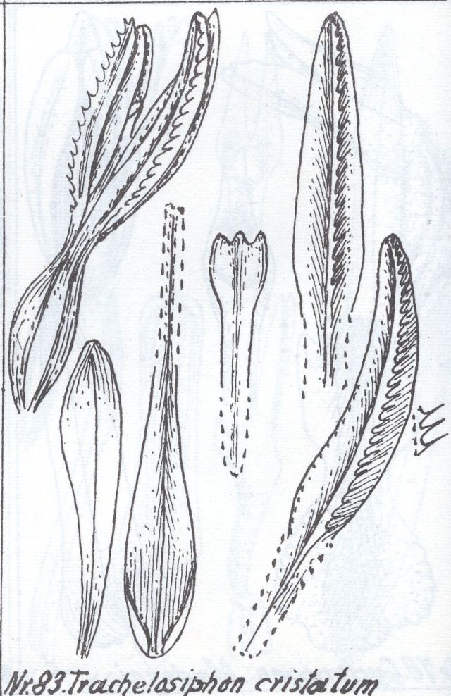 References W3 Tropicos, Kew Monocot list , IPNI ; Repert. Spec. Nov. Regni Veg. Beih. 7: 69 Schlechter 1920 as Trachelosiphon cristatum; *Repert. Spec. Nov. Regni Veg. Beih. 35: 39 Schlechter 1925; Repert. Spec. Nov. Regni Veg. Beih. 57: 83 Schlechter 1929 as Trachelosiphon cristatum drawing fide;