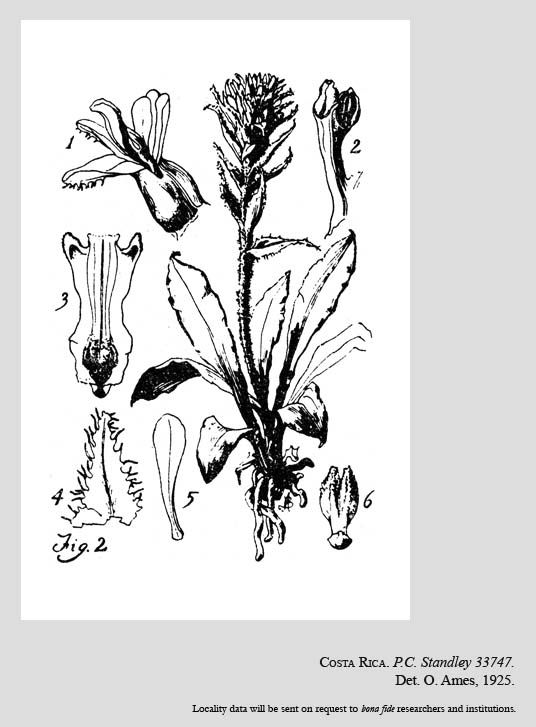 References W3 Tropicos, Kew Monocot list , IPNI ; Schedul. Orch. 9: 9-13, f. 2. 1925 drawing fide; Encyclopedia of Cultivated Orchids Hawkes 1965 drawing ok; Field Guide to the Orchids of Costa Rica & Panama Dressler 1993; Vanishing Beauty, Native Costa Rican Orchids Vol 1 Pupulin 2005 photo fide; AOS Bulletin Vol 75 #4 2006 photo fide; Orchid Genera and Species in Guatemala Archila, Szlachchetko, Chiron, Lipinska, Mystkowska and Bertolini 2018