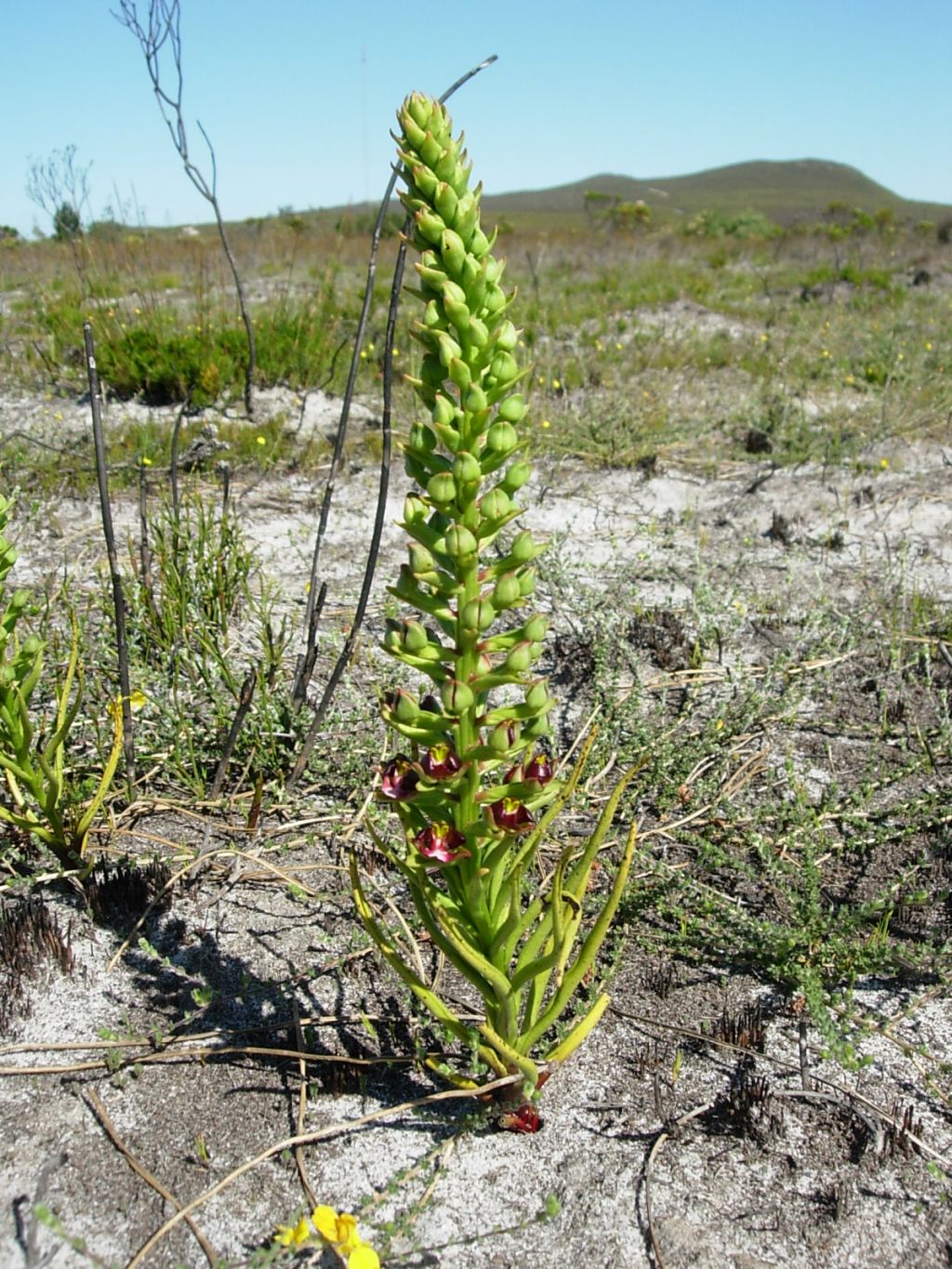 Found in southwest Cape Province, South Africa in marshy veldt at elevations of 450 to 1200 meters as a slender, small sized, cold growing terrestrial with narrowly linear-lanceolate leaves that blooms in the spring on an erect, terminal, densely many flowered inflorescence