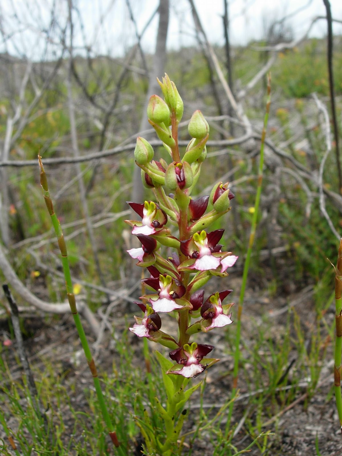 References W3 Tropicos, Kew Monocot list , IPNI ; Die Orchideen 3 Auflage Bd 1 Sonderabdruck aus Schlechter Lieferung 5 257- 320 Brieger, Maatsch and Senghas 1974 as Corycium rubignosum; Wild Orchids of Southern Africa Stewart, Linder, Schelpe & Hall 1982 as Corycium rubignosum photo fide; Orchids of Southern Africa Linder & Kurzweil 1999 drawing/photo fide; Rudolf Schlechter Die Orchideen Band 1C lieferung 40 pg 2492 - 2564 Brieger 2000; Genera Orchidacearum Vol 2 Part One Pridgeon, Cribb, Chase and Rasmussen 2001 photo/drawing fide;