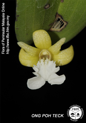 Found in Thailand and penninsular Malaysia at elevations of 600 to 1000 meters as a small sized, warm growing epiphyte with slender, cane-like stems carrying a ways up a terminal, regularily fusiform pseudobulb carrying a single, apical, ovate-lanceolate, bilobulate apically, without arista leaf that blooms on an adaxial, short, single flowered inflorescence