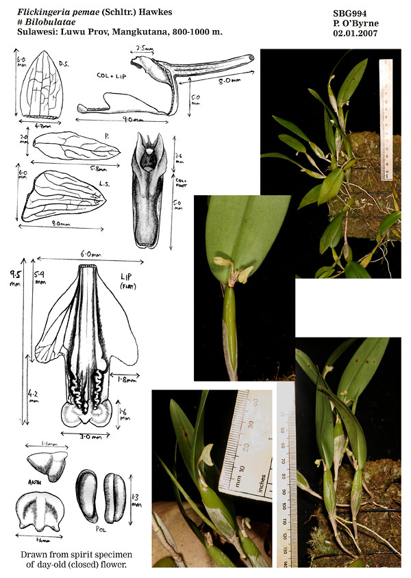 References W3 Tropicos, Kew Monocot list , IPNI ; The Orchidaceae of German New Guinea Schlechter 1912 as Dendrobium pemae drawing fide; Dansk Botanisk Arkiv Flickingeria Bind 34 NR 1 Seidenfaden 1980; A to Z of South East Asian Orchid Species Vol 2 O'Byrne 2011 photo fide