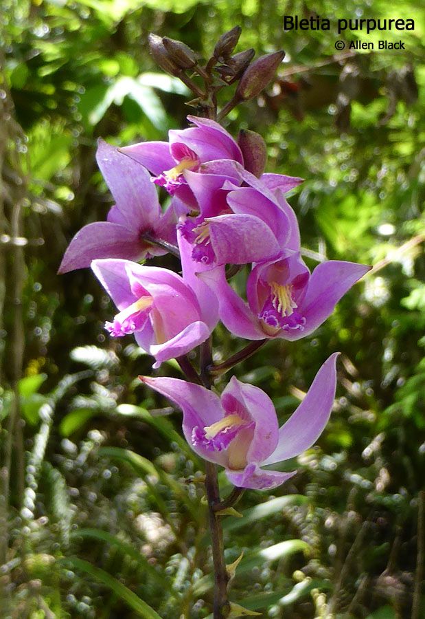Synonyms Bletia acutipetala W. Hook.; Bletia alta Hitchc. in part; Bletia havanensis A. Rich.; Bletia pallida Lodd.; Bletia pottsii S. Wats; Bletia pulchella R.H. Torr.; Bletia shepherdii Hook.; Bletia tuberosa Ames; Bletia verecunda [Salisb.] R.Br.; Cymbidium floridum Salisb.; Cymbidium verecundum Sw.; Limodorum floridum Salisb.; *Limodoroum purpureum Lam.; Limodorum trifidum Michx.; Limodorum tuberosum L. inpart; Limodorum verecundum Salisb.; Regnellia purpurea Barb. Rodr.; Thiebautia nervosa Colla