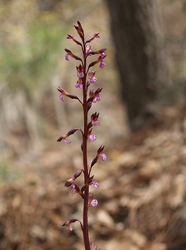 Found from the Southeastern US to Arizona and New Mexico as a highly variable saprophytic cold growing leafless terrestrial that blooms on an erect, 2 to 14" long, racemose, pink inflorescence occuring in the late spring through fall.