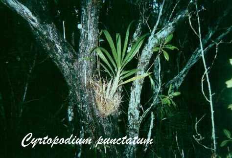 Cyrtopodium punctata in it's natural cypress swamp setting.This photo and the next of Oncidium luridum were taken by Stephen Jones and lent to my page. Thanks Stephen! Great shots!