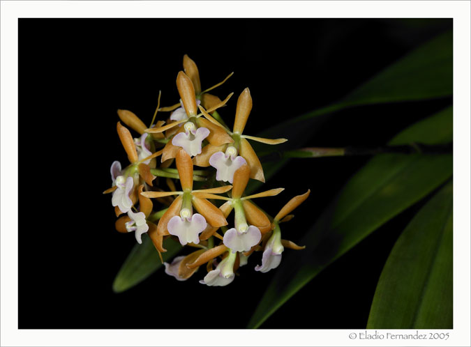 Found on the island of Hispanola and Cuba as an equitant creeping epiphytic miniature found in dry scrub, woods or fence posts at sealevel to 700 meters hot grower with 1/2" flowers that are fragrant and long-lasting and occur in the spring.