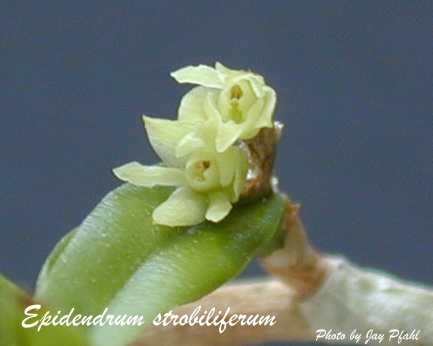 Found in Cuba, South Florida, the Bahamas, and elsewhere in the Caribbean as a hot to warm growing epiphyte that blooms on a short, axillary, racemose, several flowered inflorescence with fleshy, fragrant, shortlived, successive opening flowers occuring in the spring and summer.