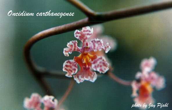 Synonyms *Epidendrum carthagenense Jacq.; Lophiaris carthagenensis (Sw.) Braem; Oncidium andreanum (Cogn.) Garay; Oncidium carthagenense var. andreanum Cogn.; Oncidium carthagenense var. klotzschii Lindl.; Oncidium carthagenense var. oerstedii (Rchb. f.) Lindl.; Oncidium carthagenense var. sanguineum Lindl.; Oncidium carthagenense var. swartzii Lindl.; Oncidium henchmanni Lodd. ex Lindl.; Oncidium huntianum Hook.; Oncidium kymatoides Kraenzel; Oncidium obsoletum A. Rich & Gal.;nOncidium oerstedii Rchb.f.; Oncidium oerstedii var. crispiflorum Schltr.; Oncidium panduriferum Kunth; Oncidium roseum Lodd. ex Lindl.; Oncidium sanguineum Lindley; Oncidium sanguineum var roseum [Lodd.]Regel; Oncidium undulatum Salisb.