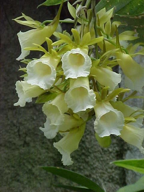Found in Venezuela, Guyana, Fr Guiana and Surinam in wet forests at elevations of 100 to 200 meters as a small sized, hot growing epiphyte with fusiform pseudobulbs enveloped by a few, deciduous, linear, acute, plicate, basally clasping leaves that blooms on a .8" [2 cm] long, pendent, few to several flowered inflorescence.