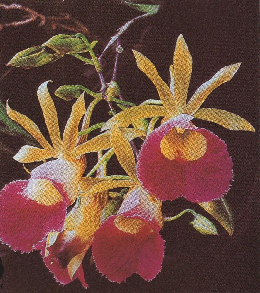 Found in Nayarit and Oaxaca states of Mexico, Belize, Guatemala, Honduras, El Salvador, Nicaragua and Costa Rica in wet pine-oak forests at elevations around 1125 meters as a small to medium sized, cool growing epiphyte with thickened pseudobulbs enveloped when developing by imbricating, triangular sheaths, leafless below and above with distichous, plicate, deciduous, basally clasping leaves and blooms in the spring and summer on a terminal, few to several flowered, racemose inflorescence arising on a mature pseudobulb