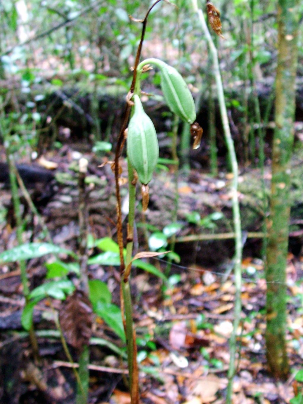 Found in southeastern Florida and Cuba in hardwood hammocks at lower elevations as a giant sized, warm growing terrestrial with 1 to 2, light green, plicate, lanceolate leaves that are not present at flowering, occuring in the fall on an erect, to 3' 4" [1 meter] long, 3 to 17 flowered, racemose inflorescence