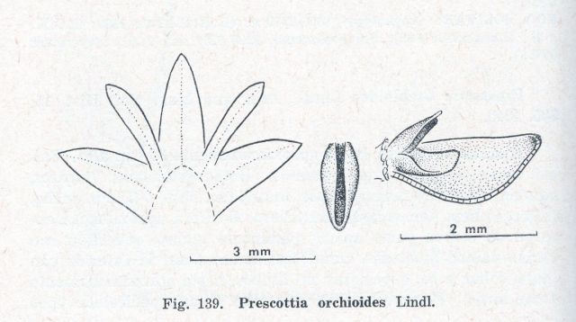References W3 Tropicos, Kew Monocot list, IPNI AOS Bulletin Vol 33 #8 1964 as Prescottia orchioiddes; Flora de Venezuela Volumen 15 primera parte Foldats 1969 drawing fide;